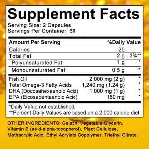 Be the first to review “DHA Supplement, Fish Oil Omega-3 1240 mg, Supports Brain Health, Improves Focus, Mercury Free, 120 Capsules”