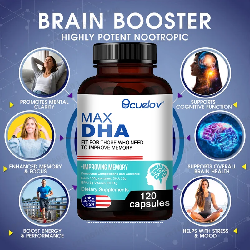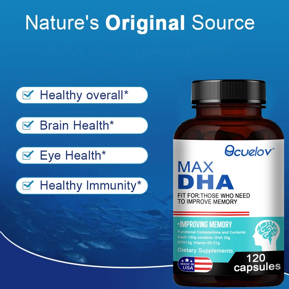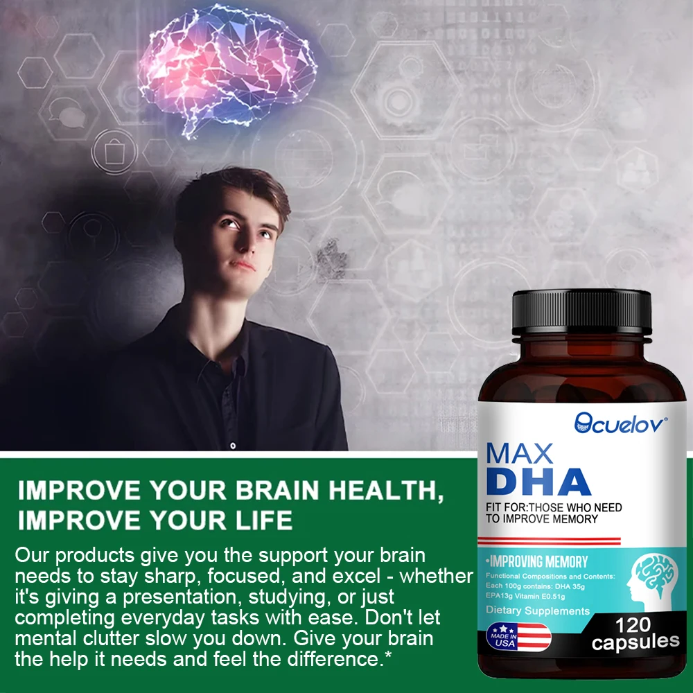 DHA Supplement – Contains DHA, EPA, Vitamin E To Support Brain Health, Improve Focus, Memory, Concentration, and Relieve Stress